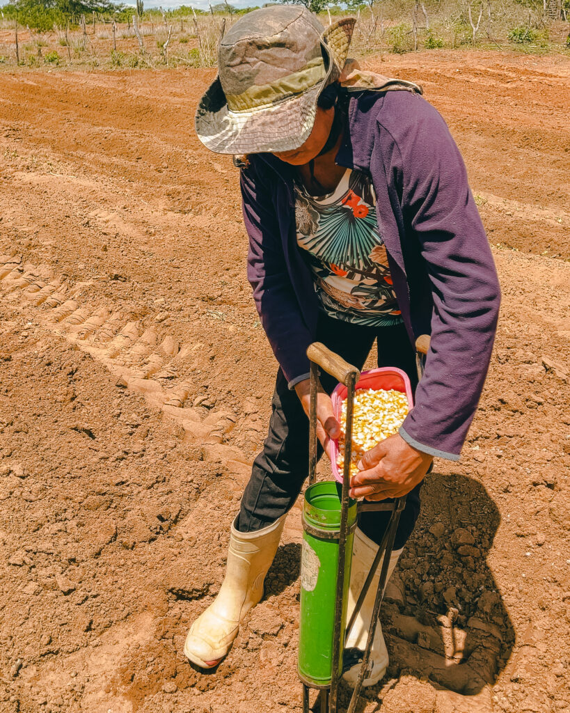 Com o trator, os produtores conseguem tombar a terra de forma mais eficiente, facilitando o armazenamento da água da chuva e promovendo um solo mais fértil para o cultivo de milho, feijão e outras culturas. Essa tecnologia aplicada diretamente nas roças tem potencializado os resultados e acelerado a recuperação das lavouras afetadas pela seca.